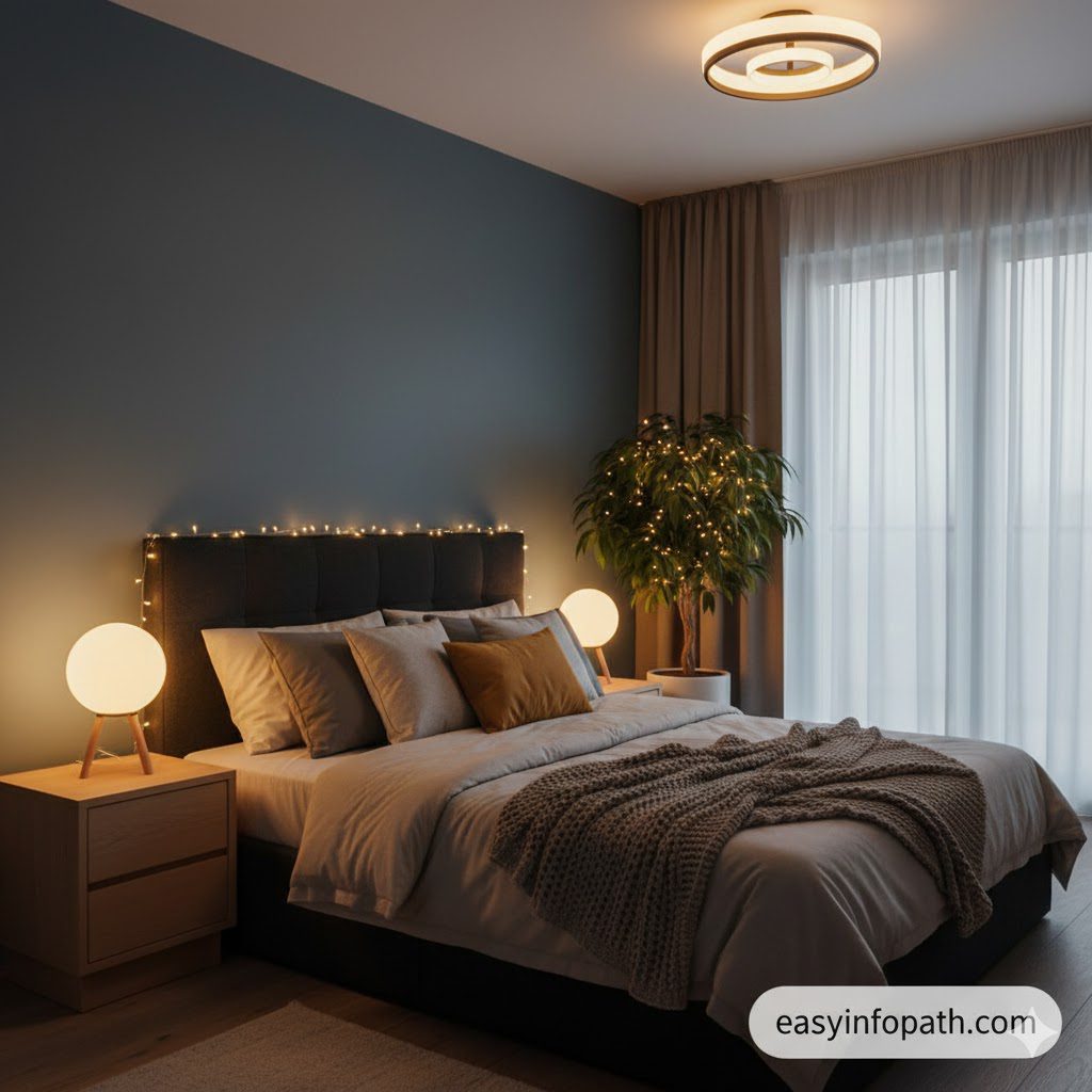 The best bedroom lighting ideas include bedside lamps, warm light bulbs, fairy lights, and soft ceiling lights. Good lighting makes your bedroom feel cosy and relaxing instead of cold and dull.